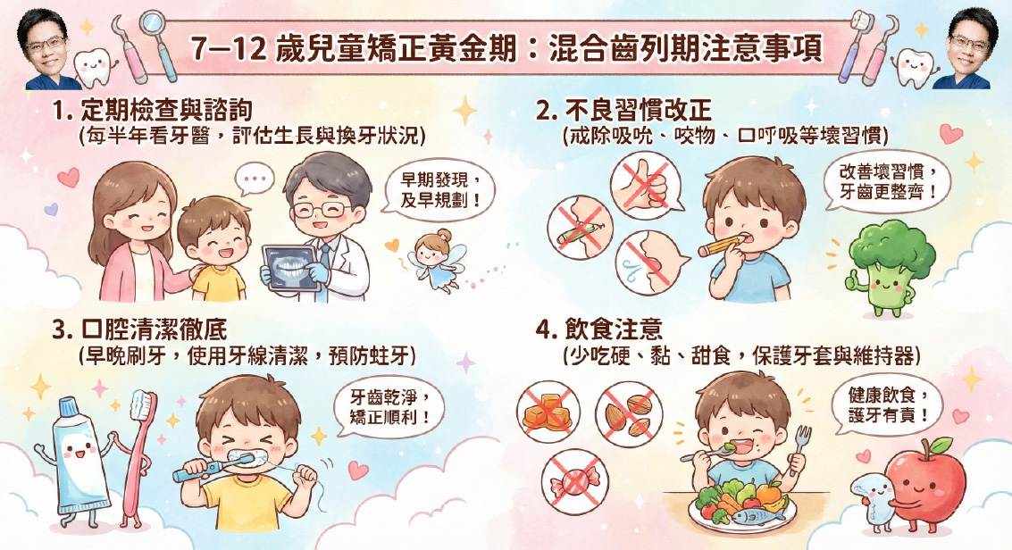▍7–12 歲混合齒列期:兒童矯正黃金期