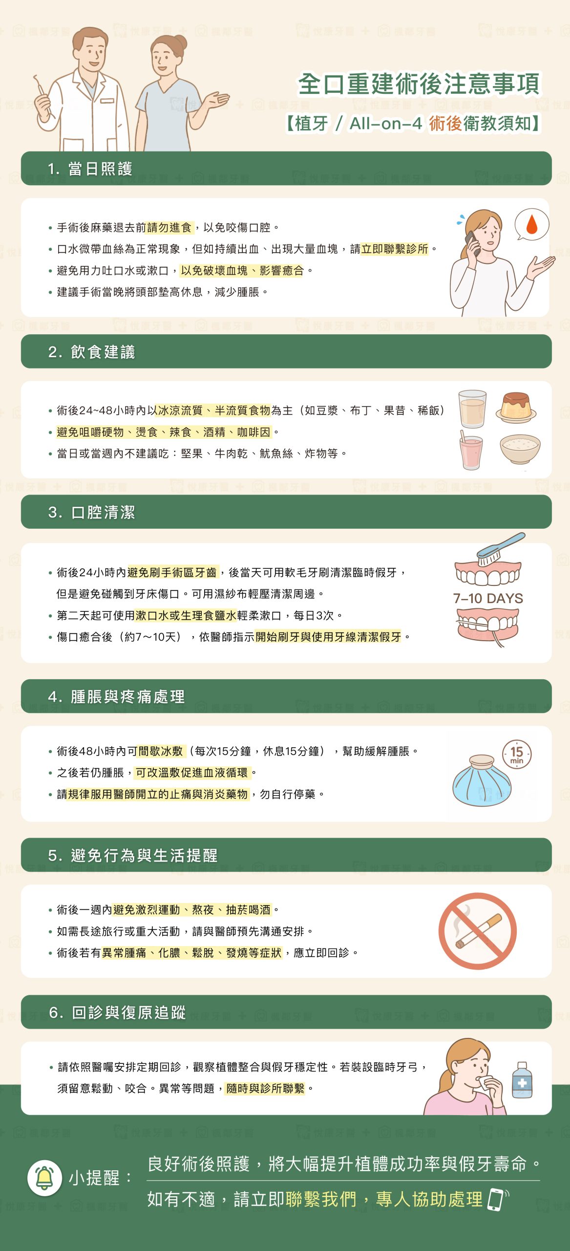 全口重建術後注意事項【植牙 / All-on-4 術後衛教須知】
