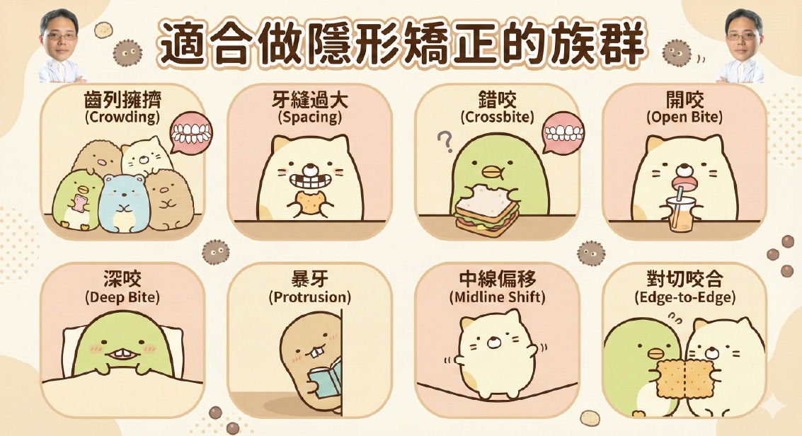 隱形矯正技術日益成熟,許多複雜的齒列問題都能獲得改善。如果您有以下困擾,建議預約醫師進行專業評估: